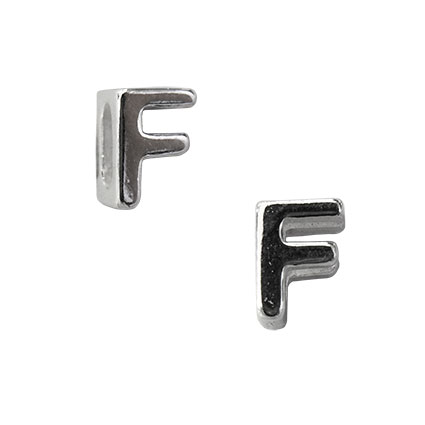 Letter F 925 Silver Alphabet slider beads with 1.1x3.7mm hole. Long hole makes these beads ideal for sliding onto ready made chain necklaces and leather chokers.