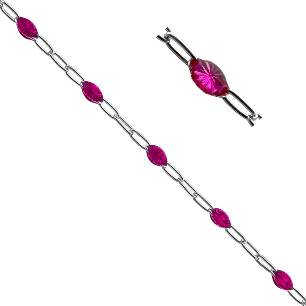 Alternating Sterling silver small paperclip chain with coloured transculent enamel sunburst links. Popular with permanent jewellery trend.
